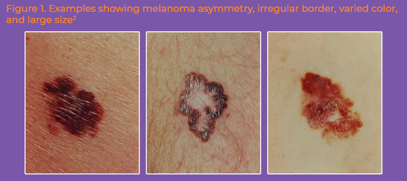 Early detection is key to preventing advanced melanoma. The ABCDE guidelines can help you identify an unusual mole (see Table and Figure below).1,2