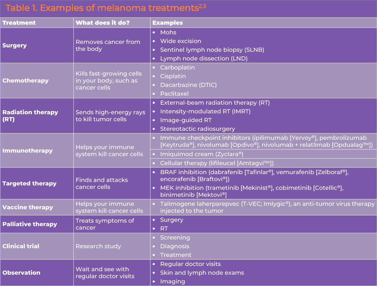 Local and systemic therapies are available for resectable melanoma. Treatment planning is largely dependent on the stage of disease (Table 1).